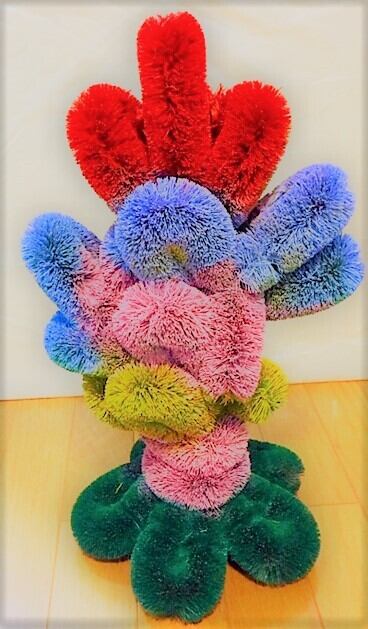 この魅力的な立体アート《シュロ亀の子だわしのインテリアグリーンをカラーリング》は、独特のデザインとカラフルな色合いが特徴。天然素材のシュロを用い、職人の手によって仕上げられたこのアート作品は、見る人の目を引き付け、空間に華やかさをプラスします。点々と施されたアクリルのカラーリングが、更に魅力を引き立て、リビングやオフィス空間を新たな表情で満たします。