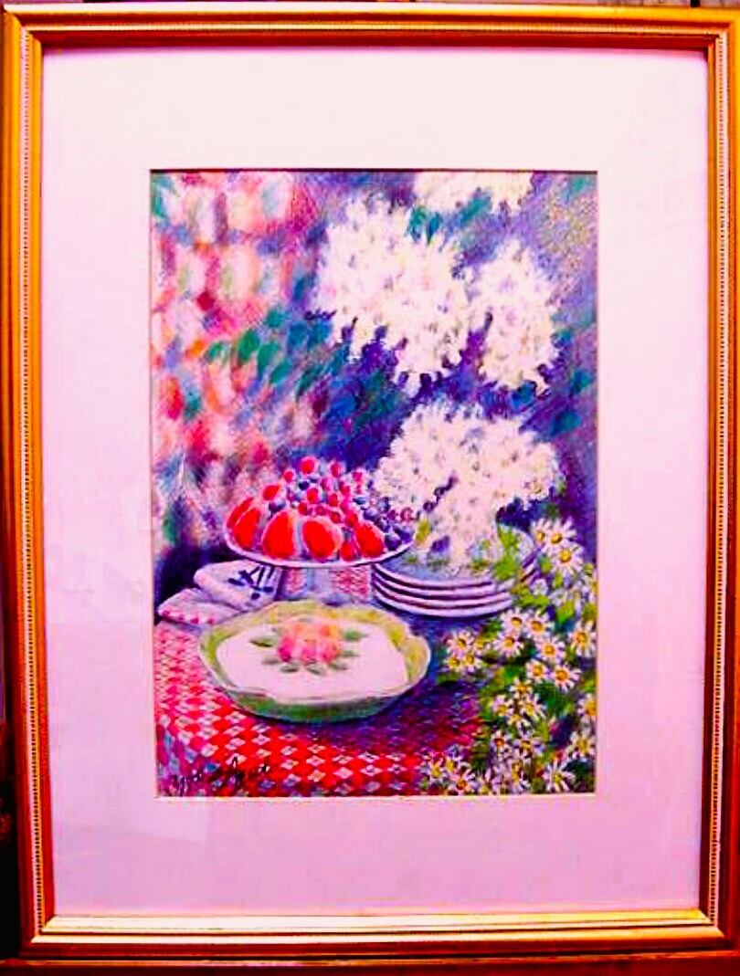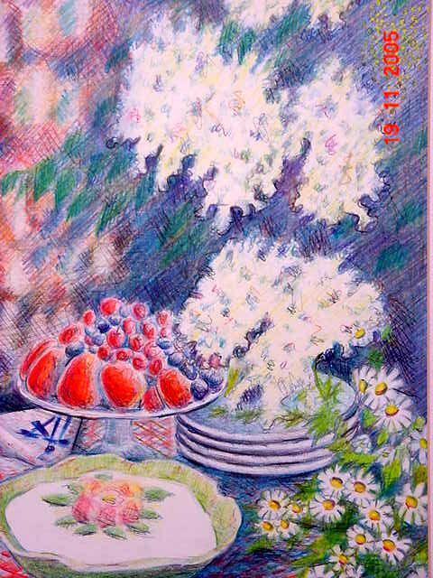 #静物画シリーズの色鉛筆画:ガーデンにて《B4イラストボード》