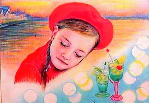 # 童画シリーズの色鉛筆画:夢の中へ 《B4イラストボード》
